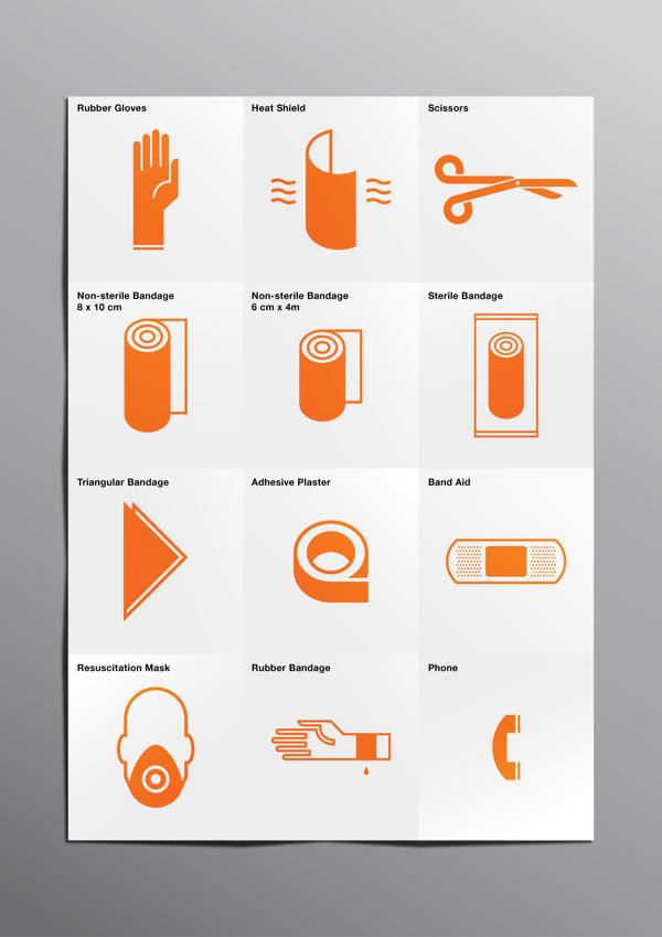 設計師 Kevin Harald Campean 所設計的一款極簡急救箱,外觀上只有單一的白色與橘色,當拉出中間的夾層紙盒時,因為設計的關係左右兩邊的盒子會被同時拉出來,打開後一目了然的用品擺放讓急救這件事變得更一氣呵成,加上以用品個別設計的極簡識別圖,就算擺在家裡最顯眼的地方也不會太突兀,反而成為室內設計的一部分,亮眼的橘也能一眼就找到急救箱,讓急救箱完全發揮該有的功能。