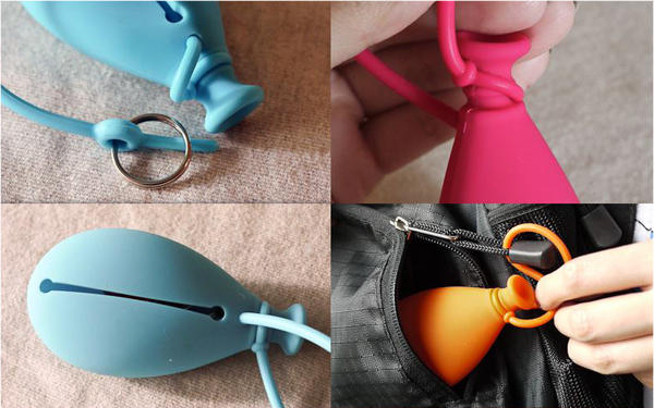 除了氣球之外,它也很像小錢袋,掛個一串超有趣,不過矽膠雖然有一定支撐度可以 Hold 住鑰匙和耳機,卻無法穩妥地收納硬幣,千萬不要太鐵齒硬要把它當零錢包!堅持要的話也沒關係,記得通知大人物去旁邊"撿現成"就好(毆)