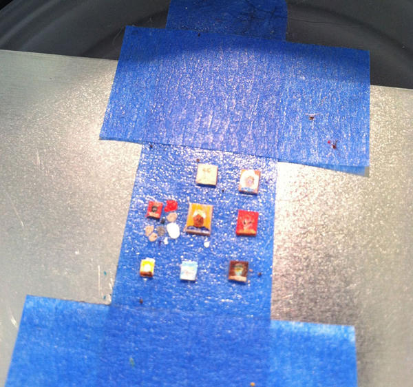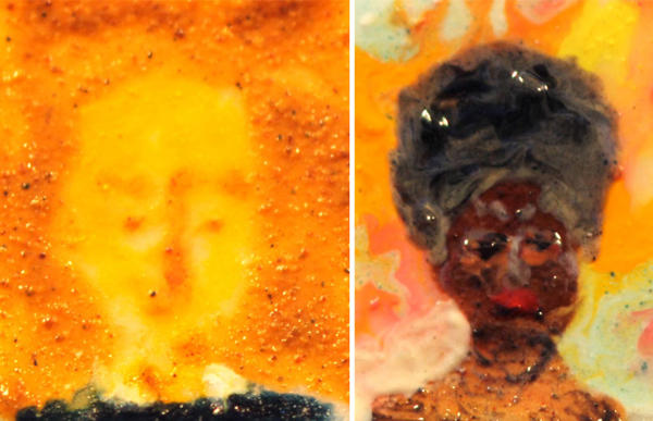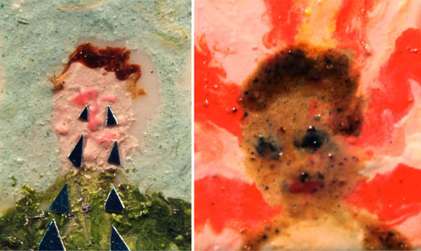 這個超迷你的微型展覽在 10/21 開幕,到 11/9 的展期間,一共展出六張系列作,主題都以人像為主,與一般我們所知的展覽不同的是,這些作品的大小都非常驚人,大概都在 4/64 x 5/64 英吋至 11/128 x 5/64 英吋(約 0.1 X 0.2 公分),作畫的工具也不是畫筆,而是一根針,用少許的顏料畫出人像,完全是西方版本的米雕阿!
