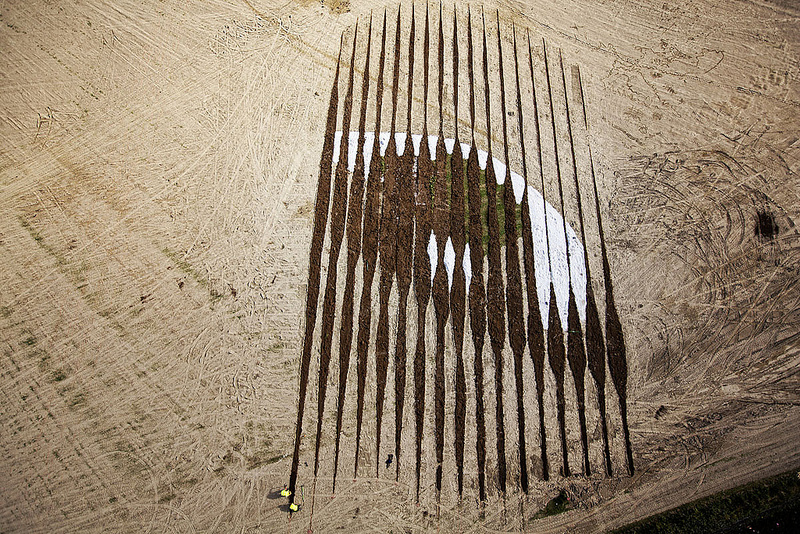 以平行視角來看完全不像藝術品,反而像是剛整過的地或者某種農田
