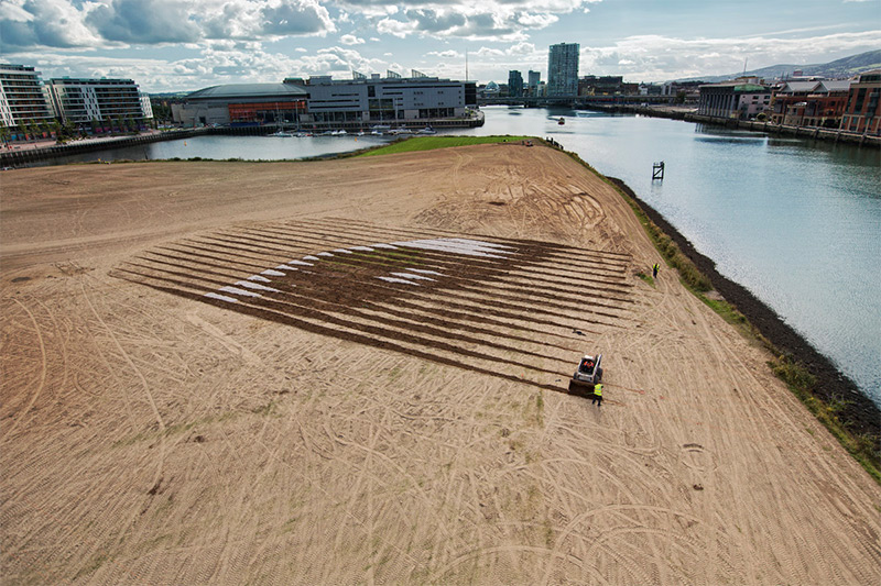 名為「WISH」的肖像畫作品,和起來像是一個女孩的臉部放大像,微揚的嘴角和明亮的大眼相當引人注目,作品就位在北愛爾蘭東北部的貝爾法斯特(Belfast)海港地區,藝術家將港邊一塊約11英畝的地當成畫布,花了約四個星期的時間完成,過程中除了面對大型創作的挑戰之外,連帶也感受到一些環境議題的重要性。Jorge Rodriguez-Gerada 希望這份作品不要給大自然帶來任何額外的負擔,所以儘可能使用當地天然素材,泥土、石頭和雜草,當展覽結束後,這些東西都還可以挪作它用,雖然這塊地本身就是人工造陸,不過還是能感受到 Jorge Rodriguez-Gerada 的心意!