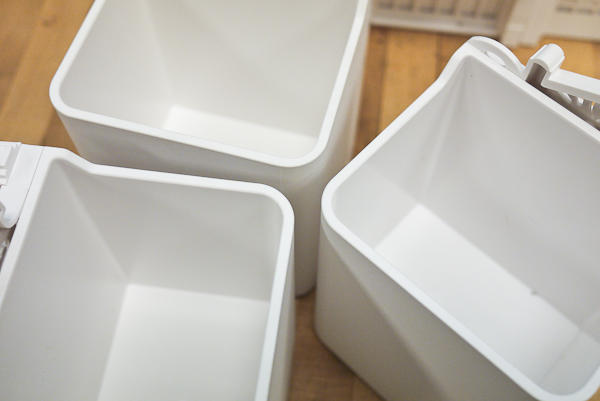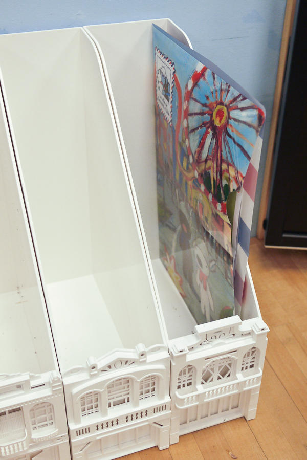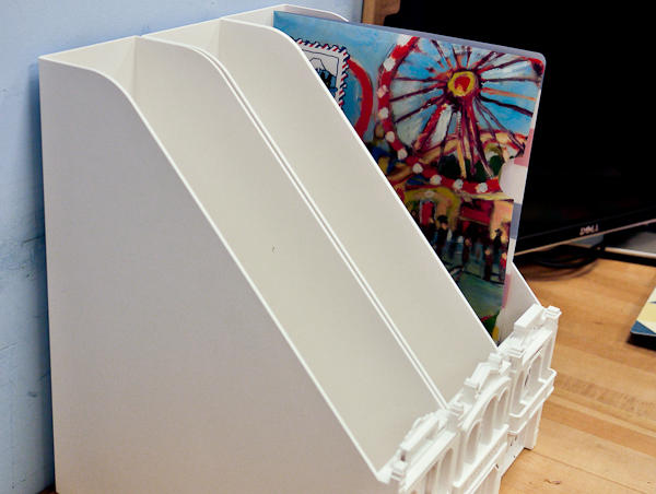 和筆筒相比,放置好後的雜誌盒比較沒有移動的需求,所以底部就沒有架高防磨用的小短腿,紮紮實實地貼在桌面。
