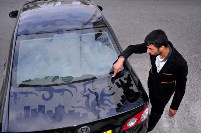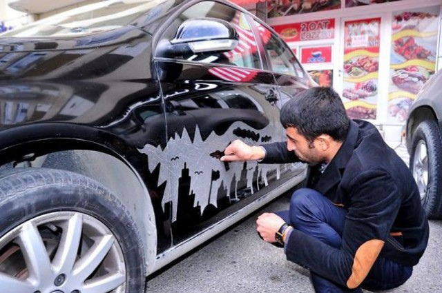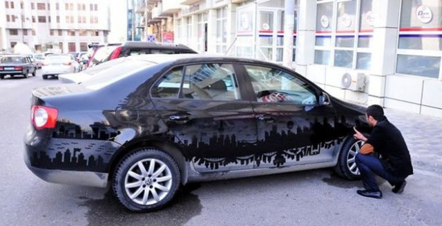 來自亞塞拜然的 Rafael Veyisov 本身職業是為泊車員,每天要經手數百台車的他,在偶然的機會下看到一輛布滿灰塵的轎車,便俏皮地用手指在上頭塗塗畫畫了起來,沒想到這一畫,竟畫出興趣!