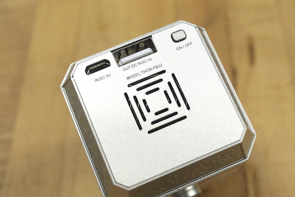 這段果然還是得拍成影片才有味道啊!這款雷神之鎚行動電源最奧妙的地方就在於LED燈號的顯示變化和逗趣的雷聲音效。影片最開始示範按下ON(開啟)鍵的效果,上頭的燈光停在整把鎚子四分之三的位置,相信聰明如大家都能猜到它的功用,沒錯這就是顯示電力的剩餘量,四分之三所代表正是剩下75%的電力,而四分之一當然就是剩下25%的電力囉~