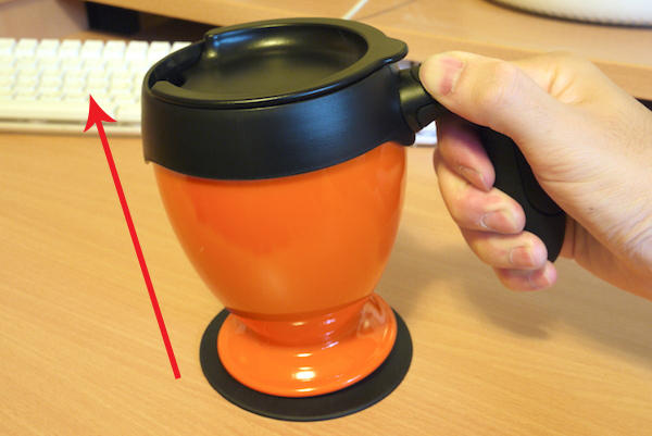 另外這支大編自拍的影片雖然沒有輕鬆活潑的配樂,不過可以很明顯的觀察到它的吸引方式,而且就算搖到桌子發出怪聲,杯子依舊能牢牢的固定在桌面上,實在猴塞雷啊~但還是要提醒各位太過猛烈的撞擊還是會造成杯子翻覆的機率大增,請不要為了測試而犧牲掉電腦鍵盤或手機喔~(笑)