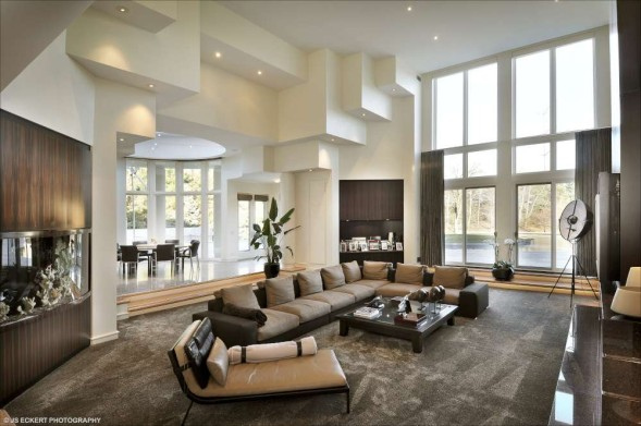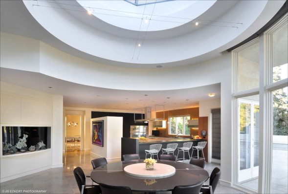 不管是客廳還是餐桌,四周都採用大片的落地窗作為採光,原本已經寬敞的室內空間在白色室內風格下又顯得更為大器。