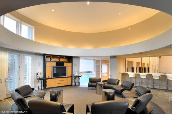 八張看起來極為舒適的沙發椅,搭配前方的大螢幕電視,Michael Jordan應該跟不少隊友在這個地方討論戰術吧。