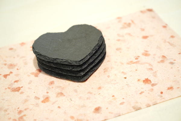 愛心形狀的頁岩杯墊兩塊擺在一起有心心相印的意涵,很適合情侶一起使用。而四塊擺在一起還能組成幸運草的圖樣,不使用時,擺在桌上都像精心放置的裝飾品一樣。