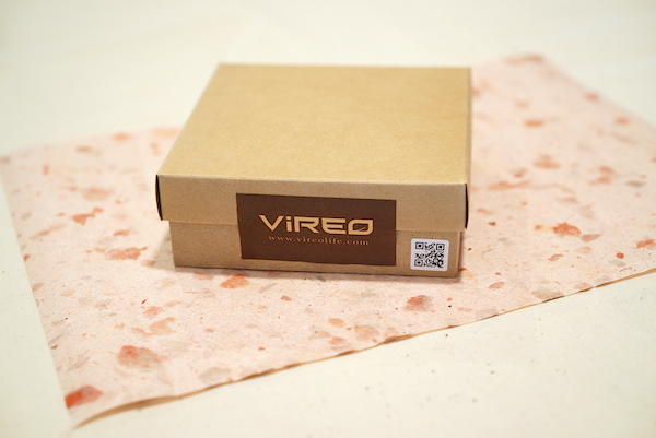 設計品牌VIREO推出一系列以天然頁岩製成的頁岩杯墊,拿起來非常的扎實有份量(畢竟它是石頭啊!),而且從外包裝就能看到追求自然、簡單的品牌訴求,紙盒上頭沒有過多的裝飾與與彩繪,給人一種樸實的感覺。裡頭杯墊還用牛皮紙包裝,並用麻繩固定,從頭到尾都是可以回收或回歸大自然的材質,就是要讓大家從裡到外都感受自然。