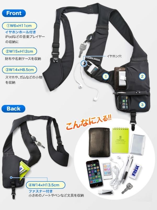 但在現實生活中背把槍在身上?除了警務相關的人員外,應該都不太有機會體驗到這樣的情境,所以想過過乾癮的人還是參考一下這款槍套吧!由日本3C配件廠商SANWA所推出的Urban Tool萬用背袋是專為上班族、商務人士所設計,裡頭可以放上入各式各樣的出門必備的生活用品,像是手機、筆記本、鑰匙、皮包、名片盒等小物全都可以塞到裡頭,需要使用的時候只管「咻」一聲,帥氣的拿出來就行了!