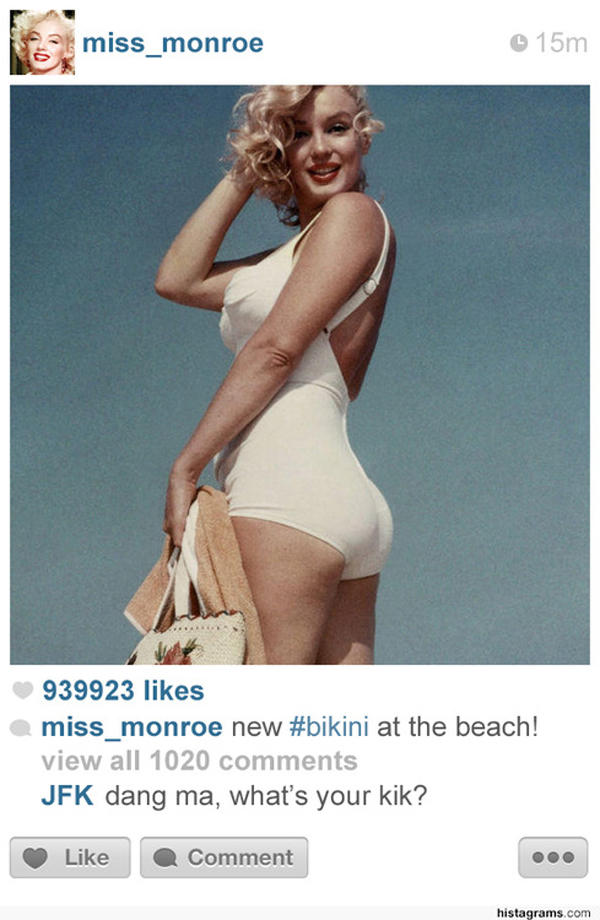 攝影師 Allen Murabayashi 最近正在執行一個新企劃,把歷史上出名的照片重新設計製作成復刻版,結合 Instagram 的發佈效果,讓我們看到這些照片就好像正在參與這些歷史性的一刻,在加上照片上的描述文字和標籤,完全忠實呈現了令人難忘的歷史記憶,如果不看名字光看照片下面的經典對話,你能知道誰是誰嗎?