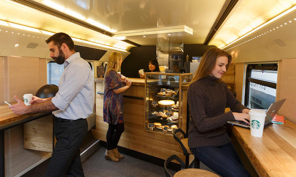 就在這個月二十一號,知名咖啡品牌星巴克所開設的第一家火車分店就要從瑞士日內瓦機場出發,並開往瑞士東北部大城聖加倫,不管是鐵道迷還是星巴克迷都很期待這次的旅程啊!這間由火車車廂所改造而成的咖啡廳是星巴克和瑞士鐵路公司(SBB)所合作的全新概念店,他們把原本的整齊排列的座椅替換成咖啡廳常見的窗邊木桌與高腳椅,並且在後段的部份擺上大大的沙發椅與和情人雅座,看起來十分悠閒舒適。