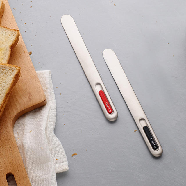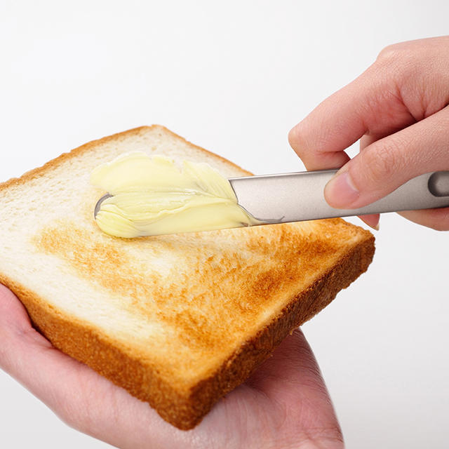 一體成型的的外觀設計以及消光的金屬色澤,前後大圓角的刀尖設計讓小朋友用起來也很安全,食品級的表面處理讓刀抹過奶油後,只要衛生紙擦兩下,就會恢復乾淨的狀態,對於喜歡抹很多種果醬,卻又覺得抹一次洗一次很浪費水又很麻煩的朋友來說,是很棒的設計!