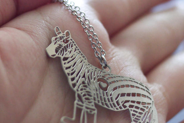 同心圓版本項鍊最可愛的地方就在於每個動物都有自己專屬的鞋子,擁有一雙細長鳥仔腳的紅鶴穿著高跟鞋襯托出優雅的身段,斑馬腳上的馬靴則多了一分自由奔放的草原氣息。