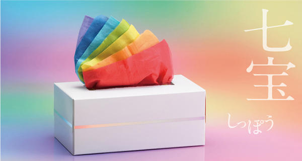 什麼叫做七寶,七寶這兩個字緣由來自「七寶燒」,所謂的七寶燒就是中國所稱的琺瑯或景泰藍,日本人非常喜歡像這樣的工藝品,他們認為七寶燒美麗且珍貴,就像佛經中常常提到的七種珍寶,所以稱之為七寶燒。那七寶面紙就是沿用裡面的七寶一詞,因為彩虹也有七種顏色的緣故。