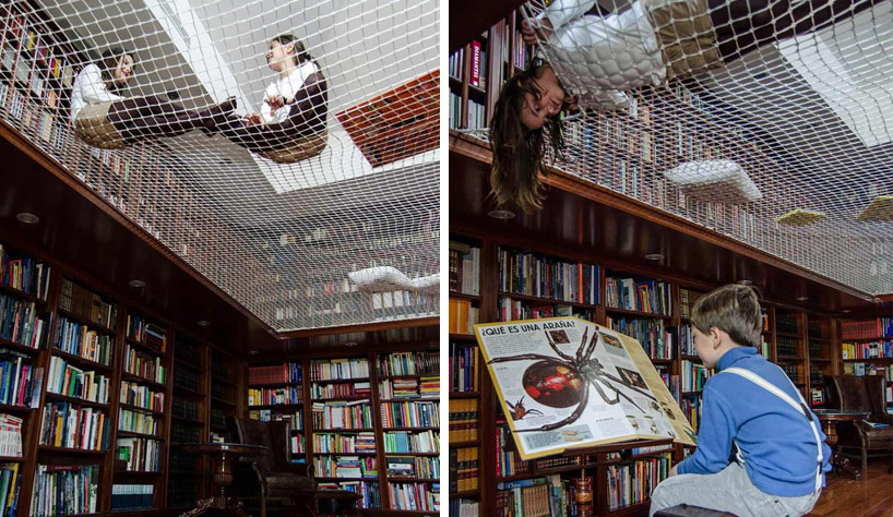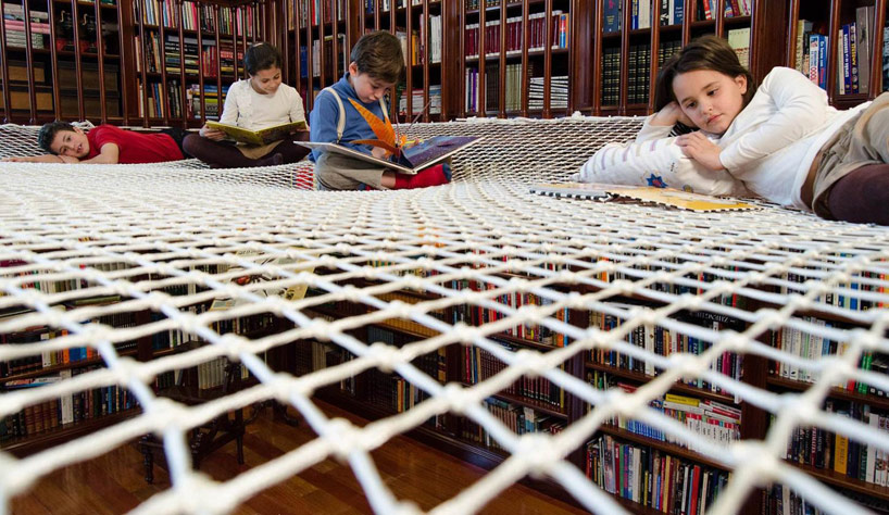 西班牙創意工作室 Playoffice 為了讓孩子們用玩樂的心情看待閱讀,而發明了「閱讀網」(Reading Net)。只要將網子架在圖書館裡做為 2 樓,就成了有趣的閱讀空間。孩子們不用再拿本書正正經經的翻開閱讀,而可以躺著、坐著、趴著,用自己喜歡的方式和書本相處。而在一樓的大人們也可以透過網子偷偷觀察小孩們的學習狀態,增加親子在圖書館的互動性。