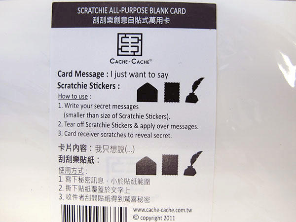 ▲另一張可以自由使用的刮刮卡,如果你想說的話實在很多,或是字比較大,可以利用透光原理輕輕的用鉛筆描出邊框,但貼上了刮漆之後利用這種方法可是看不到內容的喔!