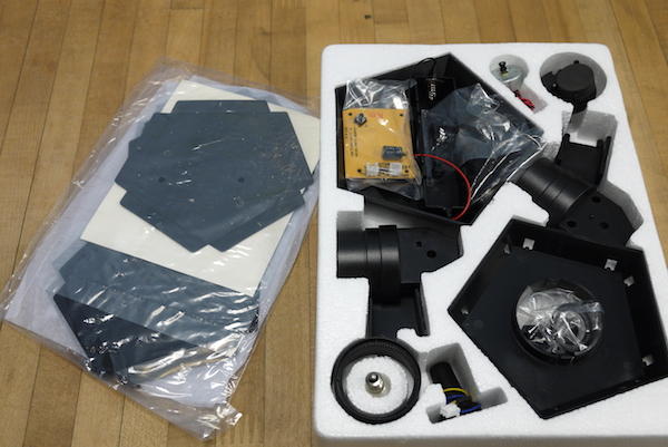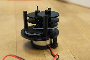 首先要來組裝驅動星象儀的馬達:將馬達裝入齒輪箱,並鎖上馬達蓋,注意要讓馬達用電源線從缺口通過即可。把組裝好的馬達組翻轉過來,依照順序安裝滑輪與齒輪,這時牙籤(或髮夾、迴紋針)的唯一用途出現,就是將滑輪上的矽膠環撐開,套入馬達的滑輪上。只要注意這個小技巧,就可以簡單完成驅動結構的部份。