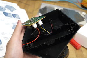 除了確認它可以順利發光外,還要記得確認開關的三步驟,第一次按下去會使燈泡發亮,再按一次則會驅動馬達旋轉,這時的馬達聲音與轉動速度都不太明顯,要停看聽才行!第三次按下去就能把電源完全關掉囉~
