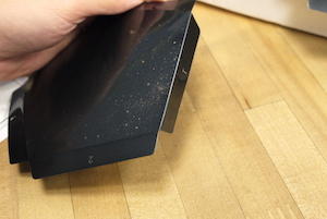 唰的一聲,保護膜撕掉後完全是另外一種樣貌,實在是美到不忍心碰它。對!就是不能碰!因為人的汗水與油脂很容易沾附在上頭,所以要盡量避免觸摸,才不會把恆星片稿的髒兮兮。大編個人是用拭鏡布代替手套來觸摸,一來不留水氣油脂,二來更可以順便把原先用髒的地方擦乾淨,提供給大家參考一下。