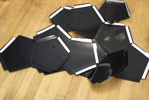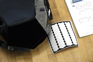 至於要貼什麼地方,就請大家好好的對照說明書,不過要特別提醒各位注意正反面與英文字母的排列,得小心不要弄錯才好。黏貼完成的恆星片會像右圖一樣,並不會每個留白處都有雙面膠,接下來就可以組合囉~