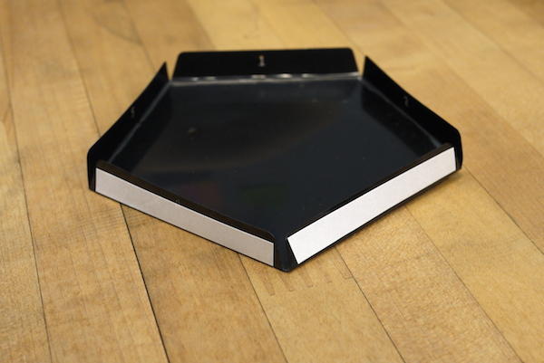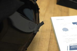 說明書上的建議是先將摺向沒有保護膜的一面(後文簡稱背面),但摺完之後要請大家再將突出的部份摺向有保護膜的一面(後文簡稱正面),每個褶痕至少會摺到兩次。之後再將附贈其中的雙面膠黏貼於背面,並且要對齊摺線才會美觀又牢固。