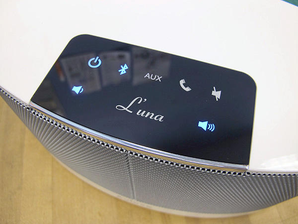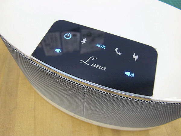 在音響本體正上方有一小區觸控式面板,完全沒有按鍵的設計讓音響整體線條超級流暢,一開始編者看到音響時還有點擔心,就以往的經驗法則,只要不用接線的 3C 產品,要不是會有連接上的困難,要不然就是看不懂音響的操作方式,但這款 L`una 暮之語所設計的操控面板上一目了然的圖示設計,老實說根本不用看說明書啊!