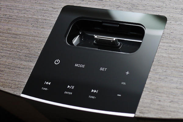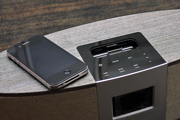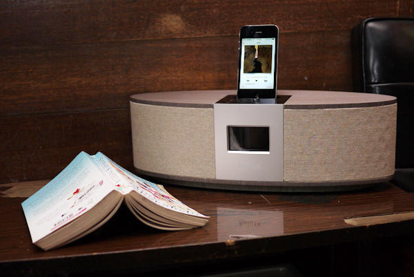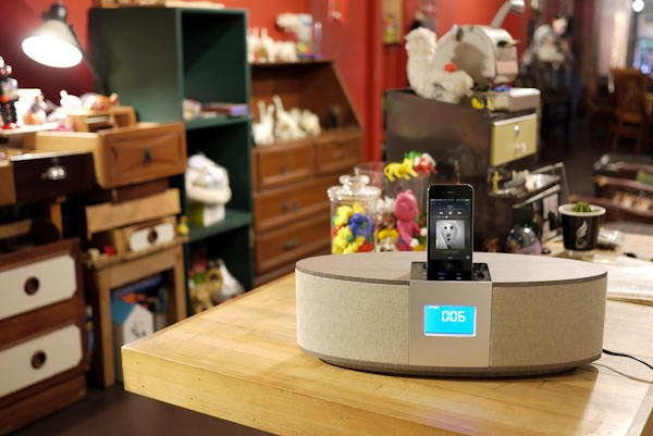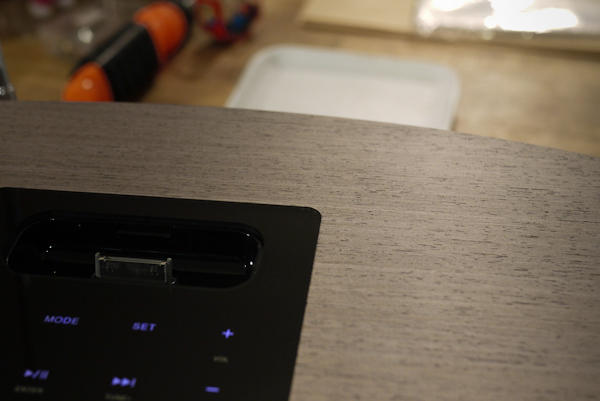 《書之語》除了有觸控式面板之外,本身也支援 iPhone/iPod 充電插座功能,可一邊充電一邊播放音樂,當然如果你手邊的蘋果裝置已經是新的小接埠,就可以改用隨附的 3.5mm 音源線代替,好處是不用把手機固定底座上也能使用音響,缺點嘛...就是看起來比較不拉風囉XDD
