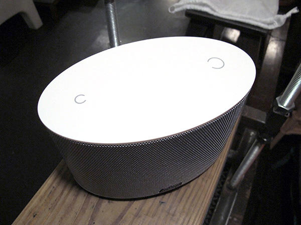 金屬飾版經過拉絲處理,也被稱之為髮絲紋,整體呈現出霧中帶亮的質感,除了外觀能夠加分不少,同時也減少在上頭留下指紋的機會,相較於光滑亮面的金屬或是鋼琴烤漆還更好照顧,讓音響能常保如新。以原木製成的音箱外頭貼著顏色淡雅,紋路自然的楓木貼皮,為了在造型美觀與音樂品質間取得平衡,小小的音箱必須花費131到工序才能打造而成,帶有陽剛氣息的金屬拉絲材質配上溫暖樸實的歐風原木,兩者調和出簡約的現代感。
