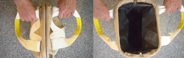 同樣概念的扣環也出現在托特包上,利用這扣環可以擺上釣飾、布偶,甚至是稍微重一點的物品。由於扣環都是與背帶縫在一起的,若掛上重物也不太會造成紙張的撕裂。除了看到背包的實用的外,大家也能從這些小地方看出設計師的細心之處。