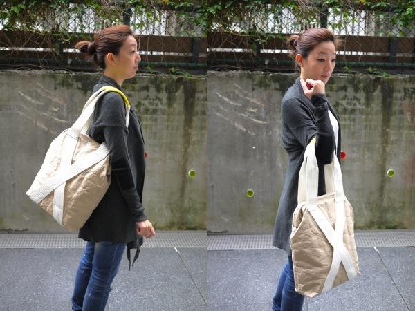 背上背包的感覺與使用情境就讓大家從照片中去體會吧!(偷懶無誤~XD),只是沒想到從水泥沙袋改造而成的紙背包竟然可以呈現如此多的樣貌,未經過多處理的牛皮紙原色給人溫暖厚實的感覺,顏色雖然低調樸素,但以紙製成的特殊包包卻可以達到相當高的吸睛指數與回頭率,走在路上,大家都忍不住多看兩眼!而且牛皮紙比起動物皮或是合成皮,還多了一份環保與愛護動物的意識,在它粗獷的外表下其實隱藏著柔軟的心啊~