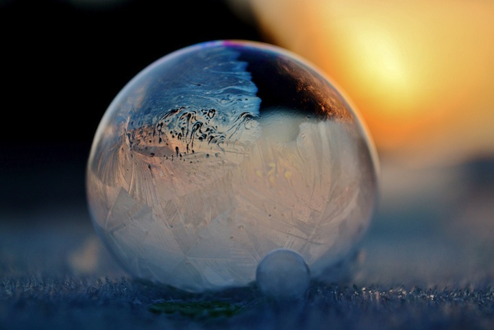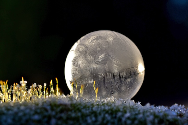 對於副熱帶國家的我們來說,合歡山上的積雪是濕冷冬季裡唯一的令人期待的樂趣,不過在緯度較高的國家,人們不用等老天降雪,光是在自家後院就能利用低溫創造出各種美麗的冰雪結晶了!攝影師 Angela Kelly 有天和兒子在戶外玩吹泡泡遊戲,當時氣溫大約只有零下九度左右,超冷的溫度讓泡泡們在半空中就直接結凍成冰球,讓母子倆玩得不亦樂乎,身為攝影師的 Angela Kelly 也立刻將這意外的收穫用相機記錄下來分享到網路上!