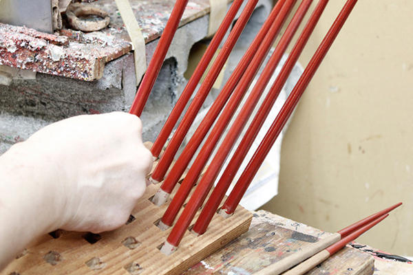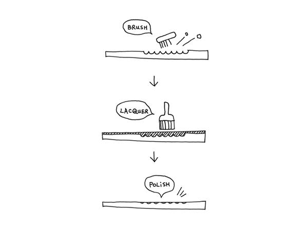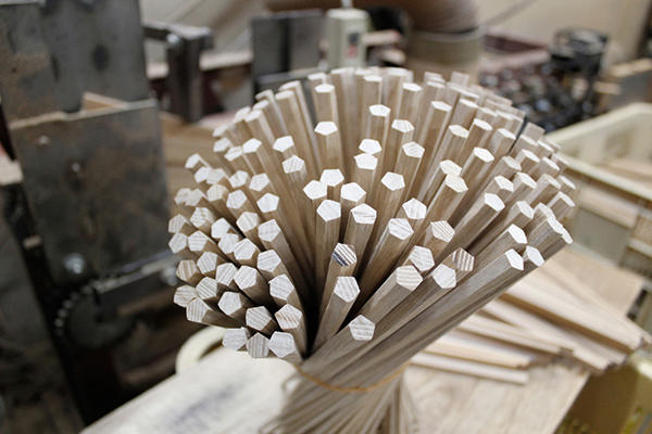 「Udukuri」這款筷子最知名的就是製作完畢後利用粗刷子把上面覆蓋的漆刷掉,留下木塊原始的木紋,然後接著塗上漆,讓木頭紋理圖案被凸顯出來,這是一種傳統的技術,不使用人工手畫而是讓自然原有的圖案更明顯,讓精製過後的筷子又成恢復到原本木材的樣貌。
