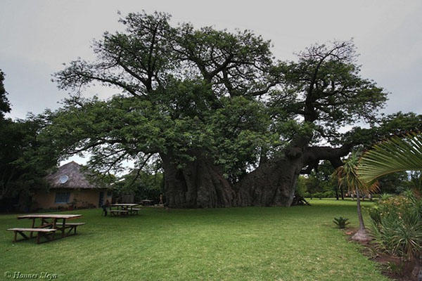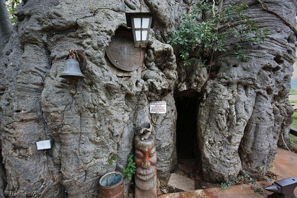 這間樹酒吧並不像深坑臭豆腐一樣在大樹旁,而是在大樹的 "中間",這顆推算下來應該有 6,000 歲的大樹,叫做猴麵包樹,坐落於 Van Heerden 家族的農場裡面,是目前我們所知世界上直徑最寬的一顆猴麵包樹,中間的空心狀態是這種樹長到一定程度後會發生的自然現象,於是農場主人決定要好好利用一下這顆中空古樹包圍的空間。