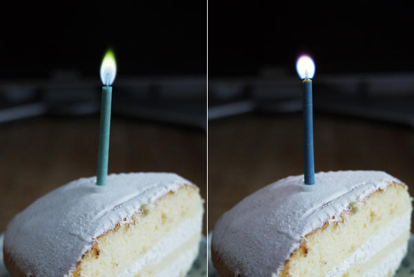 很可惜相機無法拍出燭火的色彩,實際上看來顏色相當清楚分明,有點捨不得吹熄咧XDD