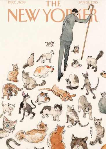 此外,每期的封面都是獨立創作,因此創作者有很大空間來繪製表達想法。這些插畫囊括許多不同主題,包含時事、政治、時尚、愛情、寵物、食物、節慶等,類別相當多元!到了每年二月是紐約客的週年紀念月,這時候封面都會以創刊號封面人物Eustace Tilley 做一個重新演繹的版本,非常有趣!