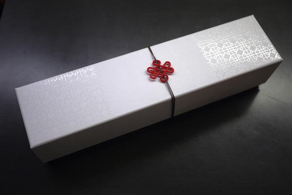 今天要介紹給大家認識的『交杯』是由台灣設計團隊KOAN+所推出的設計商品,過去大編曾經介紹過的「Between 之間筆座」也是他們的代表商品之一,帶有點禪風與優雅質感是KOAN+的最大特色,這點從精美的包裝設計就能窺知一二。長長的方形包裝上有著古典剪紙樣式的燙白處理,而其中「剪紙」更是交杯的設計概念,就連固定盒子的繩子也綁上一個可愛的紅色中國結來點綴,除了素雅之外,還多了點喜氣的感覺。