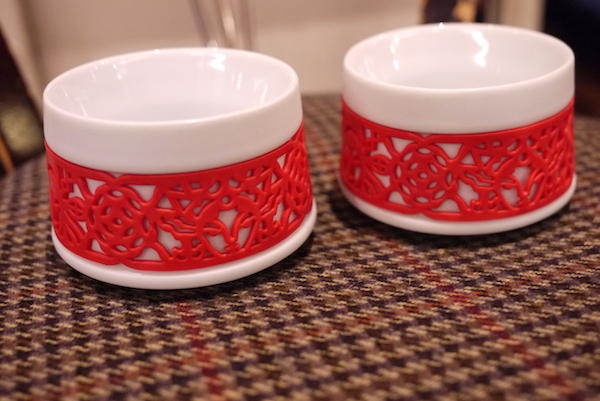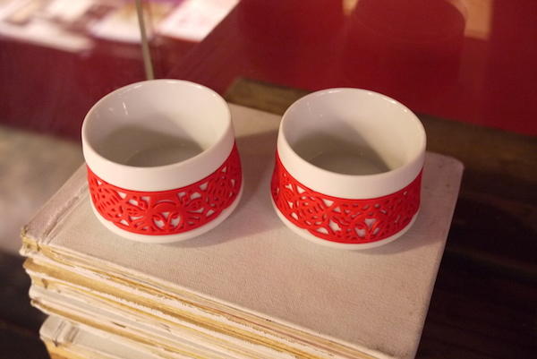 圍著杯身的裝飾是以耐熱塑料所製成,傳統的圖樣讓人聯想新婚時用來裝飾的喜氣紅色剪紙,若細看其中的圖案,還能瞧見十足中國風的新娘與新郎圖樣與浪漫的花朵。若以實用性來說,外圍的裝飾還有止滑隔熱的效果,搭上雙層結構的杯體,那怕裡頭放著熱騰騰的茶湯也一點不怕了。