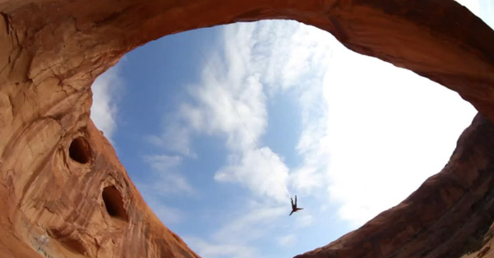 由 Devin Graham 在猶他州的 Moab 山地組織一支隊伍所拍攝的「世界上最大的盪鞦韆」,爬上了自然地景的石拱門上,綁上了名為「死亡之願(death wish)」的繩子,費時兩天輪流完成了這個比之高空彈跳的垂直起落還要恐怖的鞦韆挑戰。