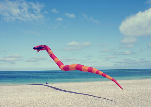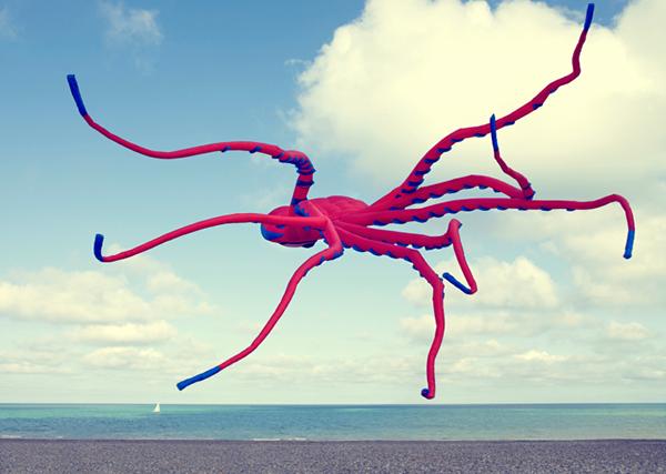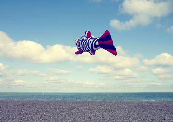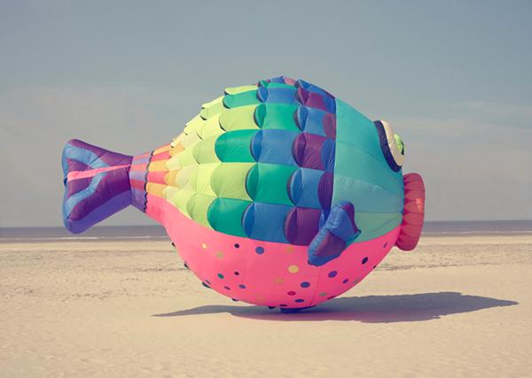 不需要漂亮的海灘或是美麗的模特兒,只要等待稍微有風的大晴天,與一片無雲的天空,就可以開始進行拍攝,在空中飄蕩的大章魚、大水母、大彩色魚,把天空點綴得就像是海洋一樣。Rene & Radka 這兩位攝影師本職是拍攝巴黎時尚雜誌內頁,但沒想到拍人物服裝很美,同樣的技術拿來拍風箏更美,也許工作繁忙之餘,也應該要把興趣適時的調劑一下才是。