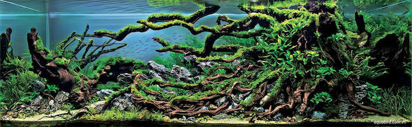 什麼園藝造景設計師看到自己的作品全都泡在水裡的時候還會很高興?耗時數個月甚至數年的辛苦設計就這樣被水淹沒,平常人難過都來不及了,但對水族箱的造景設計師來說,因為水讓他們的工作更有挑戰性,同時也更加有趣,當大家在水中看到預期之外的景色,那驚喜感更是他們的成就感,壯觀原來也可以用來形容小小的水族箱。