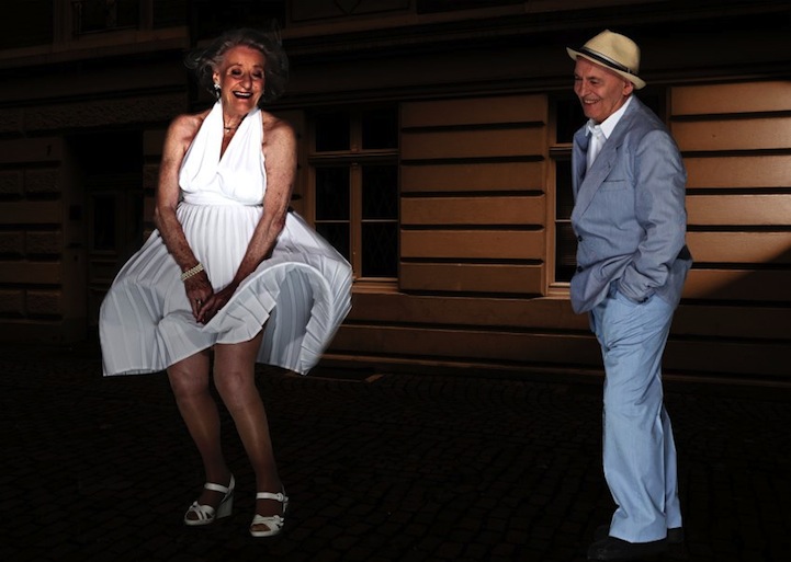 提到住在養老院的退休老人們,大多是負面的印象比較多,不過國外其實有許多規劃良好的退休老人社區制度,德國一家養老院發行了一本年曆,找來老人們重現各種經典電影橋段,例如詹姆士龐德、鐵達尼號、熱舞17、甚至是瑪麗蓮夢露的經典地鐵白裙照,鏡頭前的老人們紛紛穿上電影角色的服裝入鏡,不僅一點也不怯場,擺起姿勢還相當自然大方,看得出來他們應該也玩得相當盡興喔!