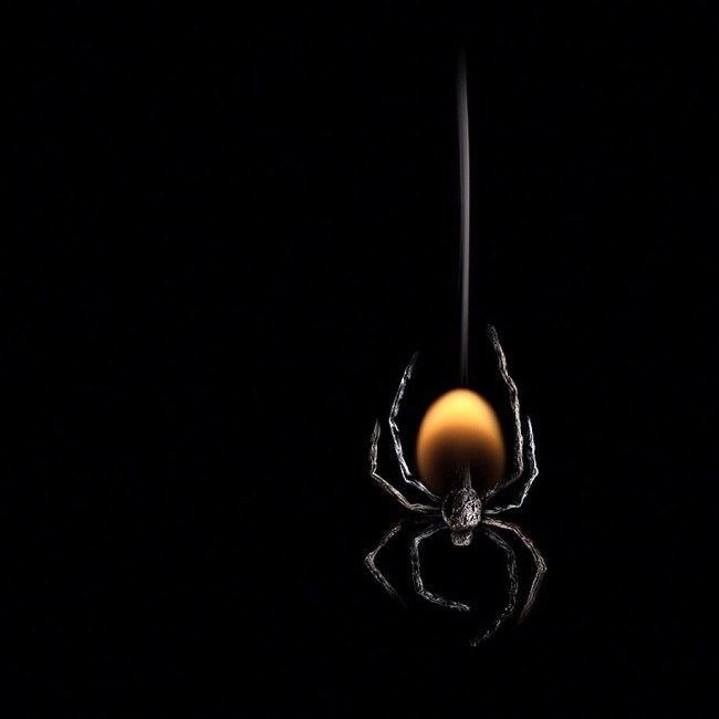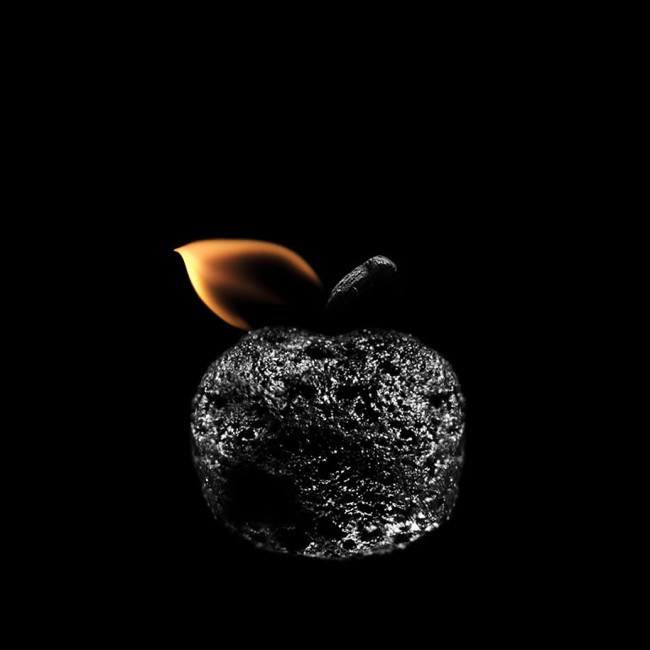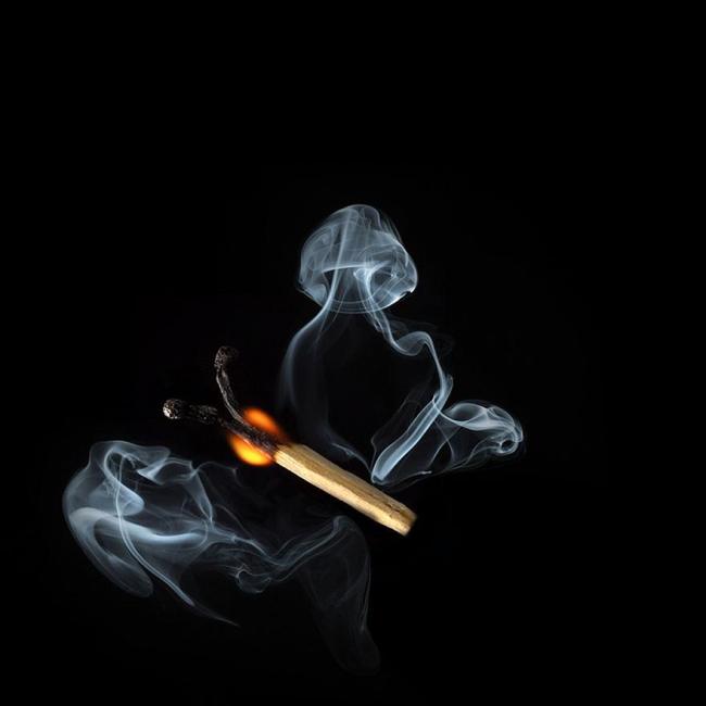 將燃燒的火柴塑型成想要的形狀,再用微距鏡頭與燈光器具攝影,最後再到Photoshop裡完成最後的樣貌