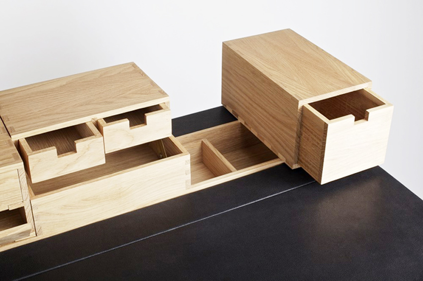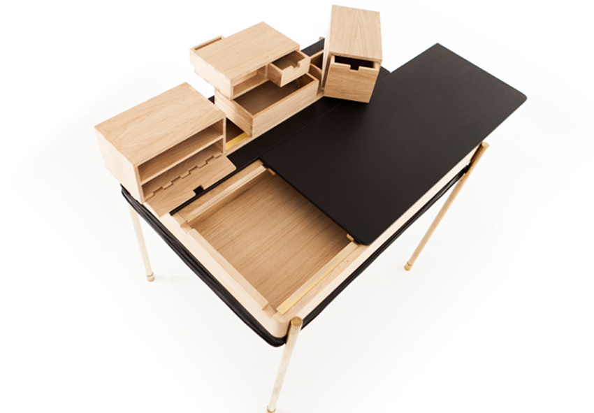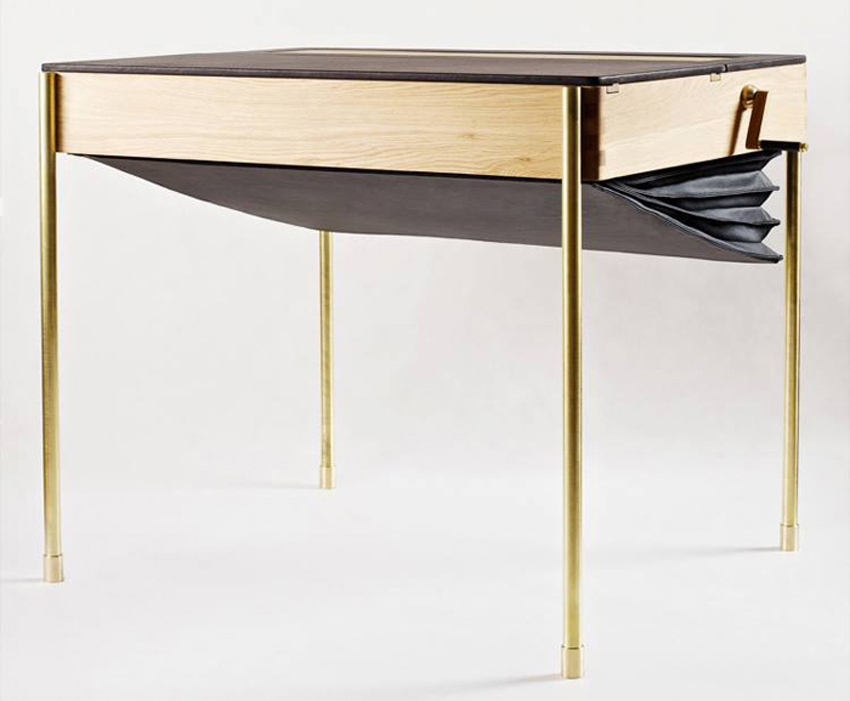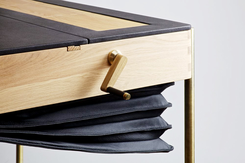 身為辦公室上班族成員之一,和我們終日朝夕相處的物品,除了電腦以外就屬「辦公桌」了!其實辦公桌的狀態正悄悄影響著我們的心情和工作表現,亂七八糟的桌面不僅讓你工作效率降低,還會引來老闆的關注啊!這時候收納就很重要了,以往我們頂多在桌上擺上幾個大小不一的收納盒,來自波蘭設計師 Magdalena Tekieli 更強調收納要收得優雅,設計出這款 Secret Desk 風琴式手搖工作桌!以橡木、黃銅及皮革製作而成,簡約外表中流露出低調的奢華感,最特別的是它的隱藏式收納功能,考慮到有些物品不是經常使用的,為了可隨時保持桌面清爽,便能以手搖方式將收納盒收入桌內空間中!