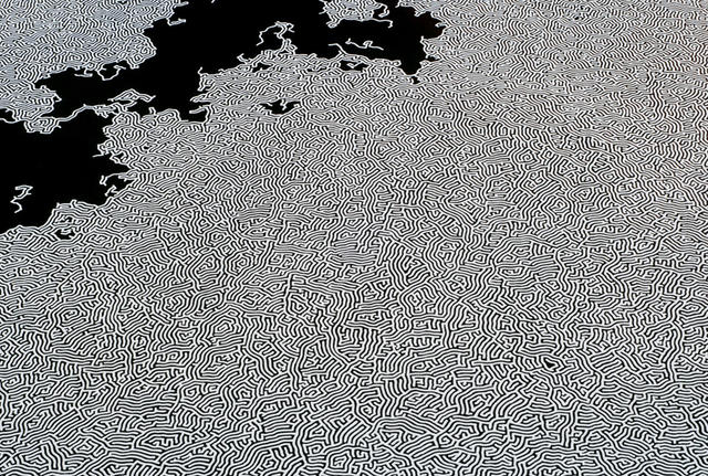 在他的創作裡,那一幅幅巨大有如迷宮般的軌跡,是他模擬人的大腦所畫。作品中每一道的堆疊都像是思念的堆砌,每一個崎嶇蜿蜒都是回憶之路,容易受到環境而改變狀態的鹽,也像人生一樣,會有許多變化,然而時間無法重來,所以更要珍惜每個階段遇見的人事物,好好的用心過人生。