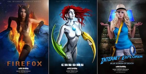 還記得前陣子向大家介紹過「瀏覽器的戰爭從網路界打到服裝界囉!」,在這系列的攝影作品中,各個知名的網路瀏覽器全部都被擬人化,換穿上符合其特性、外觀的時尚服裝,讓瀏覽器之間的競爭不只是比較流暢度與擴充性,而是延伸到更具體的想像空間中。至於今天要介紹給大家認識的藝術家Mike Roshuk所推出的圖像創作在概念大致上雷同,但實際呈現上卻是更加的立體豐富有看頭,光是看那身材你就知道…(大誤)