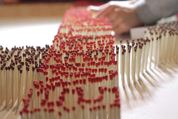 一般藝術家們很少會對作品"動粗",但如果不經破壞就無法完整呈現創作理念,他們也是不會手軟的,《Everything is ending》就是這樣的例子,以 Javier Jabalera 為首的團體 3DN 用火柴棒細細地排出一幅世界地圖,中間橫跨一行字《Everything is ending》後,再將整個板子拿到室外一把火全部燒個焦黑,呈現出的相當驚人的視覺效果,只能說幸好沒有失敗,因為光是想到前置作業耗費掉的心力就忍不住讓人手軟哪!