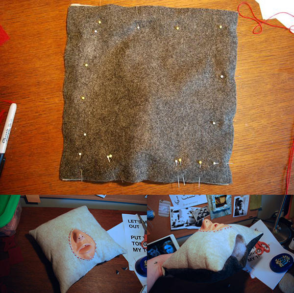 最後完成的枕頭你可以放上「Let's make out 讓我們來喇舌吧!」、「Put your tongue on my tongue 把你的舌頭放上我的舌頭~」這類很煽情很直白的標語,甚至可以黏上喜歡的人姓名、照片等等之類任何詭異的附註,讓這個毛骨悚然的舉動更上一層樓。