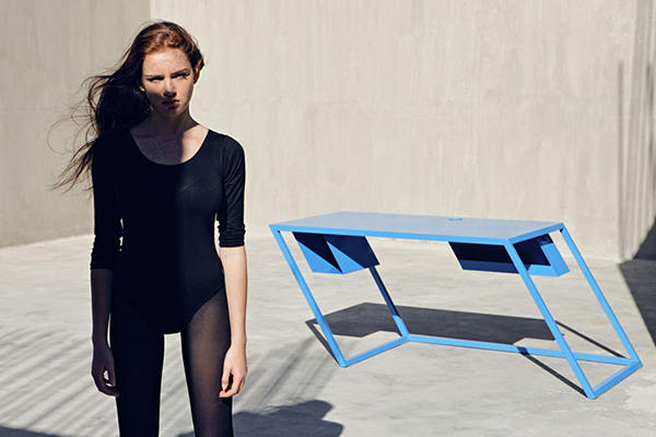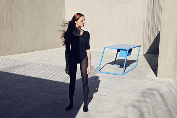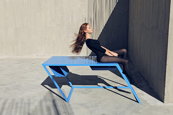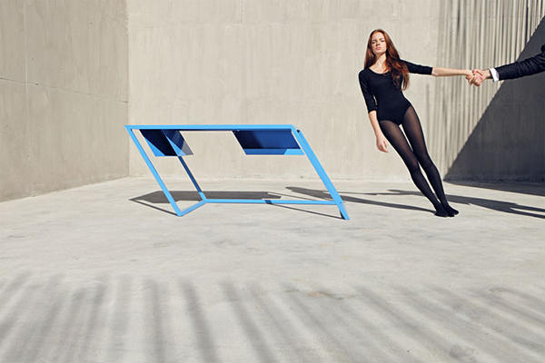 這些傢俱看起來雖然不太穩,但是實際上都經過精密計算,桌上擺的東西,人坐的椅子,都不會輕易倒下,這些主要由紅、藍、黃三色為主的桌椅,都是全手工打造,俏皮的往左往右傾斜,並商請了攝影師 NakaniMamasaxlisi 拍攝女模與傢俱俏皮互動的一系列形象照,讓桌椅的穩固度有個保證(至少坐上去不會倒下),只是如果某天家中有客人來訪時,可能還是得要費上一番力氣才能勸說客人坐下就是了XD。