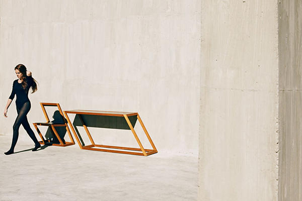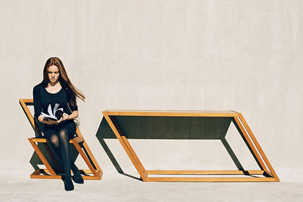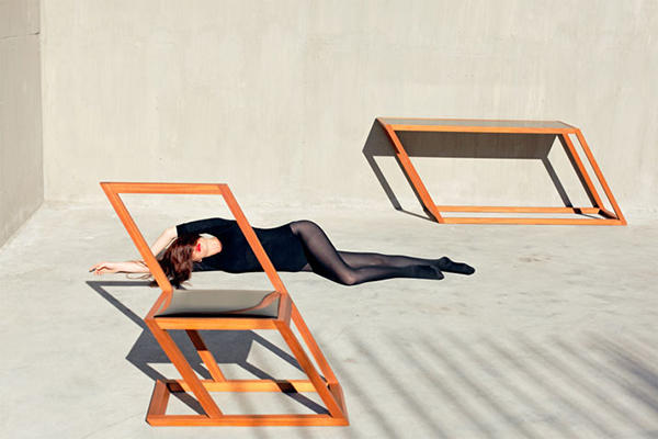 以往我們選購傢俱的要點除了自己喜歡的樣式之外,還會再三確認這些傢俱的穩固程度,既然無法利用實際操作去測試尚未付錢的桌椅,那我們就只能利用眼睛看,設計工作室 XYZ Integrated Architecture 所設計的傾斜傢俱,單就肉眼看,你一定不敢輕易地掏錢購買回家,畢竟這麼斜的桌椅,一副坐上去就會跌倒的樣子,難免令人心驚驚。